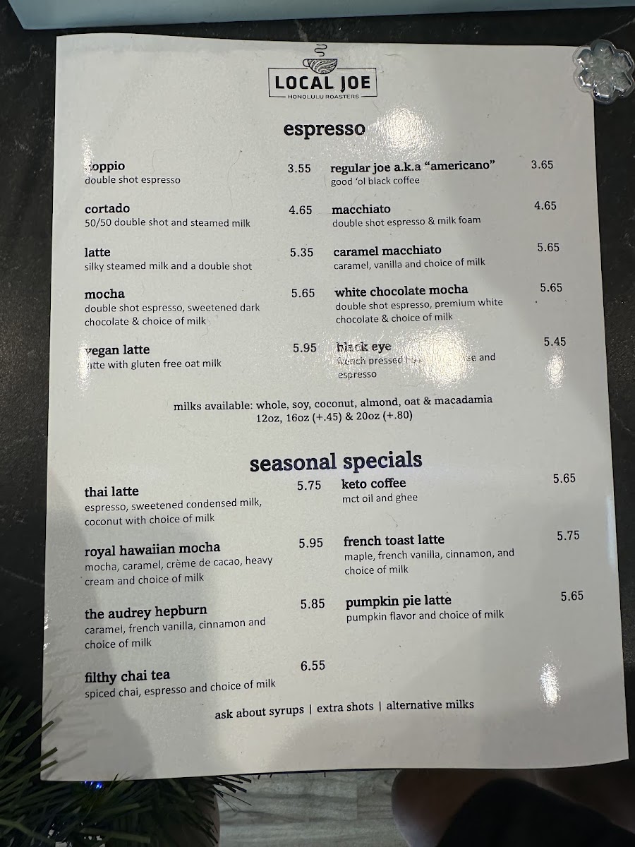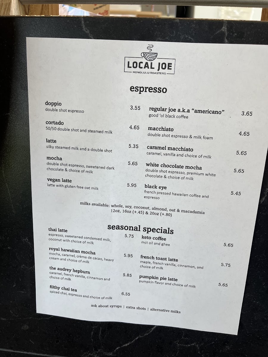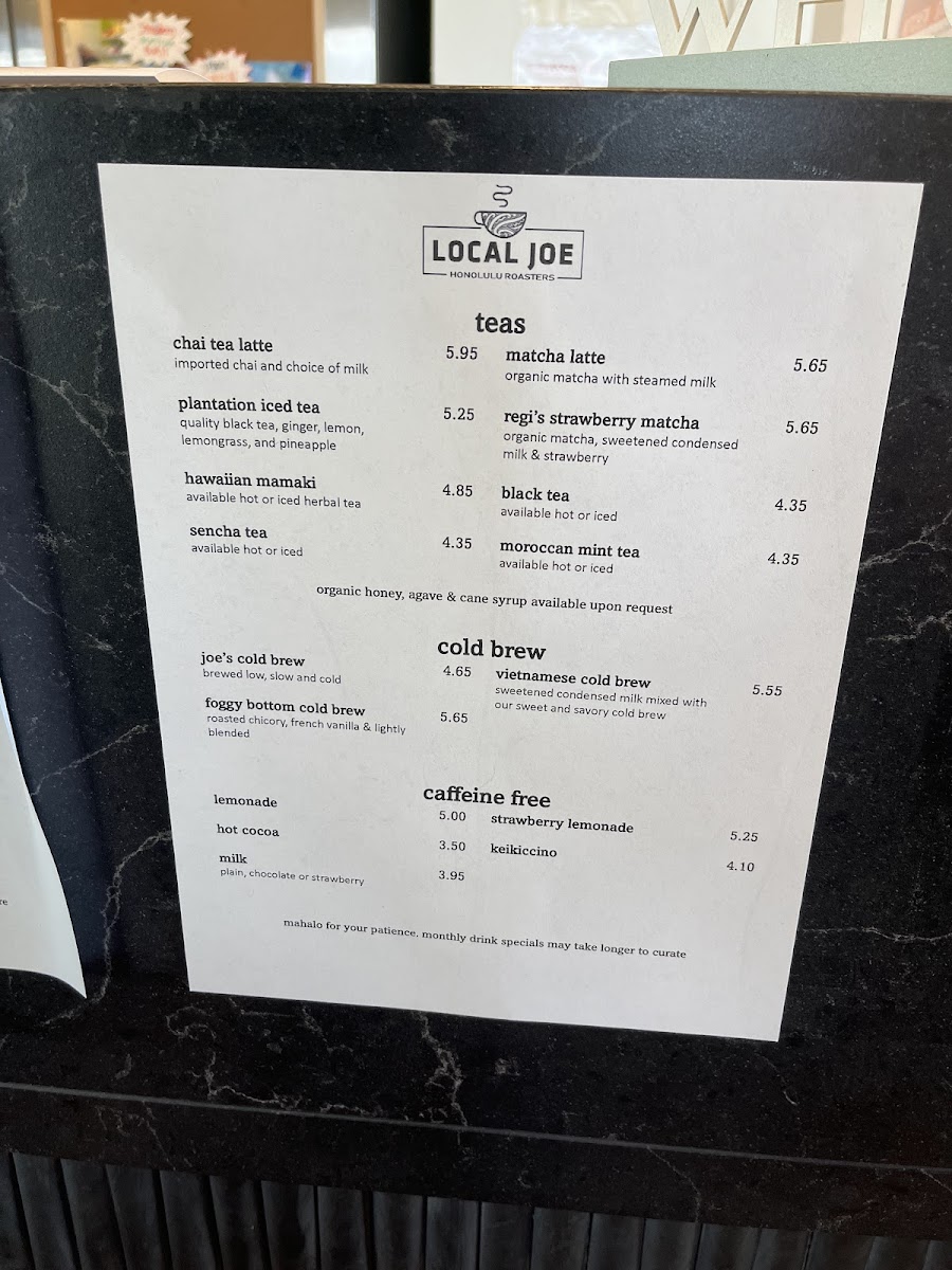The friendly service at Local Joe West enhances the experience, with baristas who are not just skilled but genuinely interested in crafting the perfect drink for you, whether that means adjusting the sweetness of your coffee or accommodating dietary needs. The cafe offers ample seating both indoors and outside, allowing you to enjoy your coffee while soaking up the beautiful Ewa Beach ambiance. With fair prices and a spotless environment, it’s an ideal spot to relax or catch up with friends.