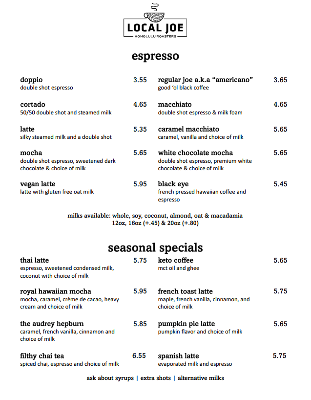 Discover the charming oasis that is Local Joe West, your go-to cafe nestled in the heart of Ewa Beach, Hawaii. Located at 91-3598 Nana Hope St, Suite 1425, this delightful spot promises more than just your average coffee break—it’s a community hub where flavor and kindness blend beautifully.